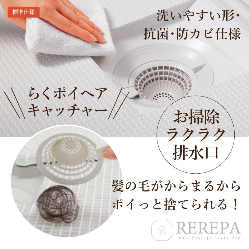 ●排水口:お掃除ラクラク排水口(抗菌・防カビ仕様)
